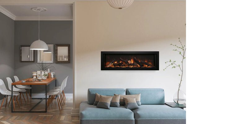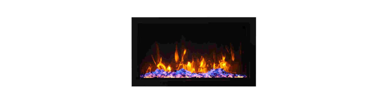 The Panorama Series of built-in electric fireplaces have been designed to give you the maximum flexibility in selecting a unit that perfectly suits your needs. The stylish new BI-DEEP electric fireplace will be a focal point in any space – indoor or outdoor. Panorama fireplaces are rated for Indoor or Outdoor use. Full Frame Viewing Area The Panorama Series give you multiple lengths and depth options as well as giving you the ability to install your fireplace with your choice of finishing material built right to the glass for a “clean face” design or using the provided black metal surround. Your choice – your design! Note: Deep models come with large glass nuggets, diamonds fire glass media, and an 11 piece log set.